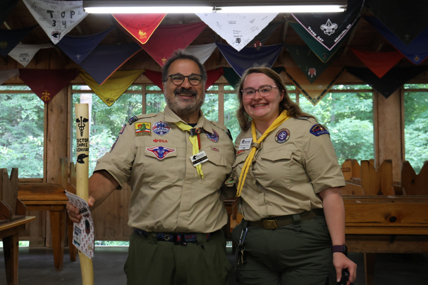 Thank you to Dr. Chris Tashjian for 40 years of service to Many Point. He started as a staff member and is now the Lead Doctor for Camp. Dr. Tashjian coordinates volunteer doctors every week to supplement our medical staff, was instrumental in Many Point opening through COVID, and serves on the medical staff at National and World Jamborees.