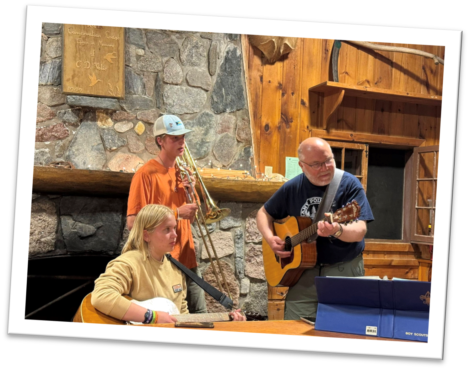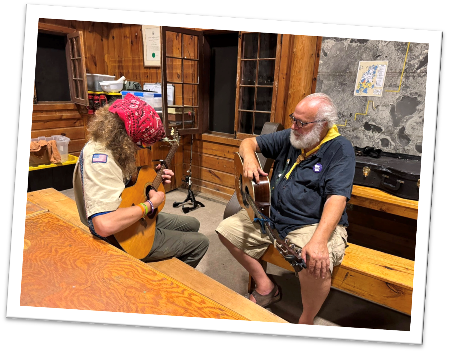 After camp, we received donations of 3 more guitars and another banjo so we are in really good shape for next year. I would like to thank the efforts of Al Boyce, Jay Belschner and Peter Larsen who were “instrumental” (sorry) in putting this program together. If you have a guitar or banjo that you would like to donate to this program, please reach out to any of us and we will get the instrument in playable condition and get it to camp.