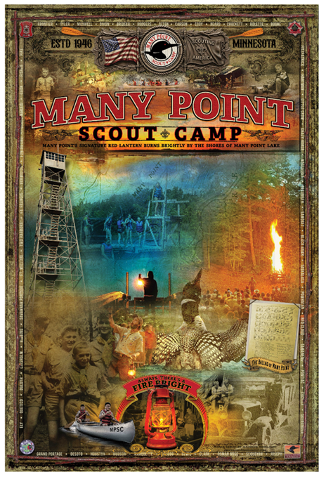 Behold! The first evidence of a giant celebration on the horizon; The Many Point Scout Camp Heritage Poster celebrating themes across the last eight decades of camp!